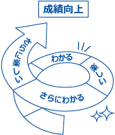 「わかる→楽しい→さらにわかる→さらに楽しい→成績向上」という感動のローテーションで結果を出します。